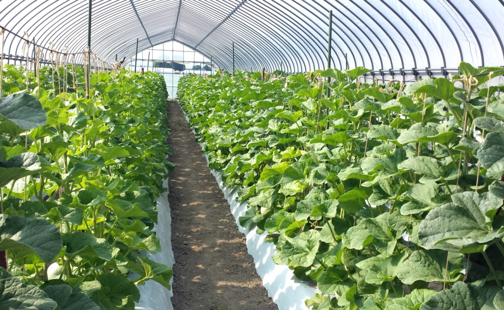 7月末に「秋メロン」のハウスを見せていただきました。9月初旬に収穫されるメロンがすくすくと育っています。これも販売期間は短いため、前のめりで伺わなくてはなりません。