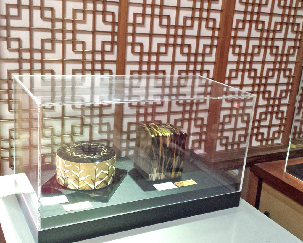 1.美術蔵では会津作家の漆芸作品の展示がされていました。販売も兼ねており価格は数百万をするものもありますがそうそうは動かないそうです。伝統工芸士や日展受賞作家を応援する場です。たくさん売れてほしいと思います。美と技を兼ね備え芸術の域にあるこれらの作品は今後つくり続けられるかどうか分からないのです。貴重な逸品を見る目を持った方に買ってほしい。そして価値を高めてほしい。地元はもちろん、日本文化を日本人より高い感性で捉える海外の方や、蒐集家の方々にこの美術蔵を広く知ってほしいと思います。