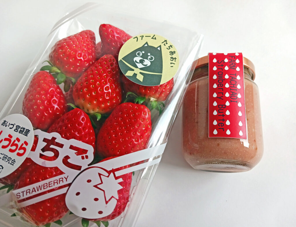 ジャムではなくいちごバターにこだわった小さな商品です。加えていちごそのものが美味しいとの声を聞き、合わせて購入してみました。あいづ宮袋いちご研究会のいちごは質、味とも確かなものですが「ほしうらら」と言う品種は初めて聞きました。美味しいことはもちろん経験のない味でした。素材にもスイーツ等にも「甘さ」が強調されがちな方向性の中で、基本となる「味の個性」を久々に実感しました。お聞きしたところ、いちごバターの素材は「紅ほっぺ」とのことでひと瓶にいちご10個を使い、バターが濃厚さをプラスしています。生産されている「ファームたちあおい」様にホームページ掲載のご承諾をいただき、早速お知らせをしたいと思いましたが、道の駅あいづを中心にイベントや特設ブースなどで販売されており、たくさんの方がご存じのようです。