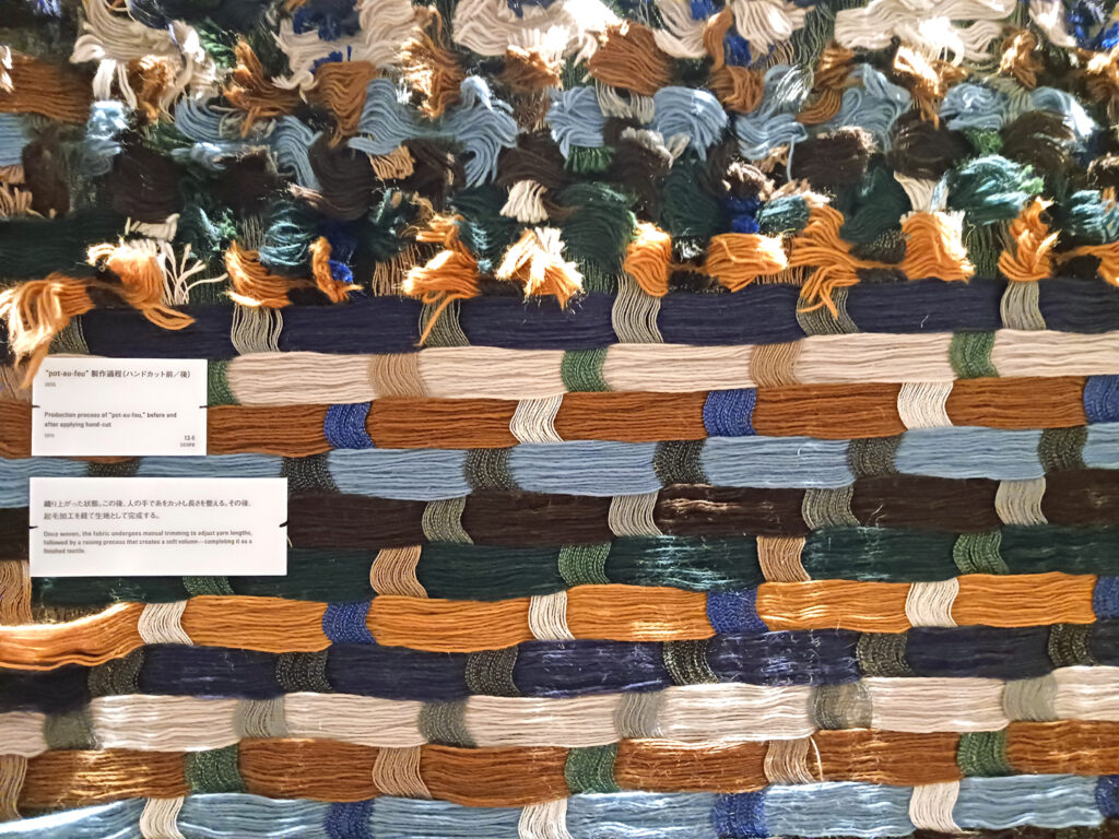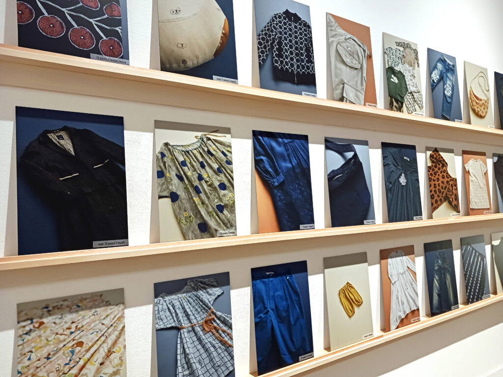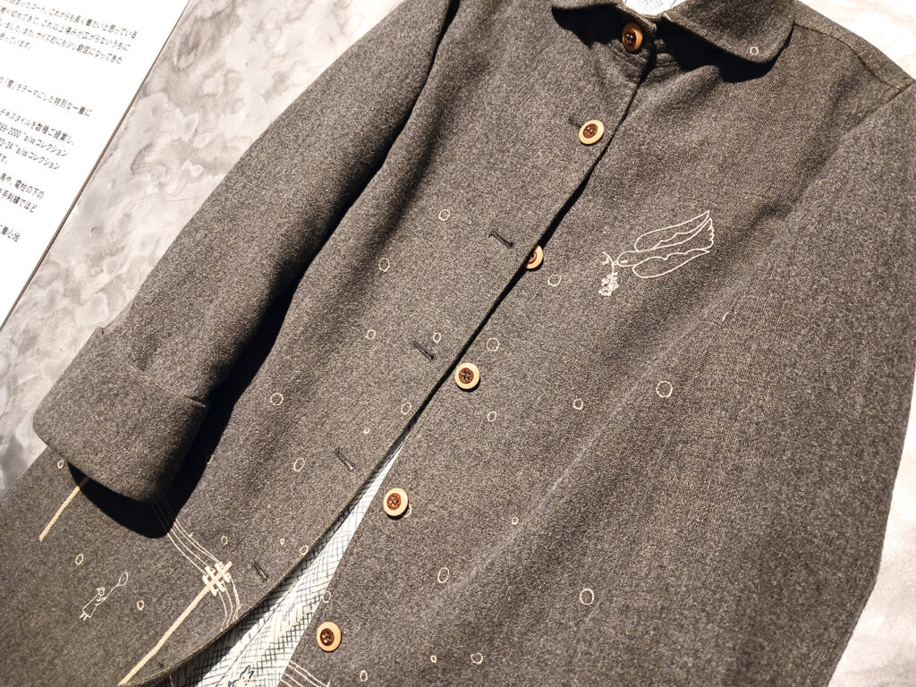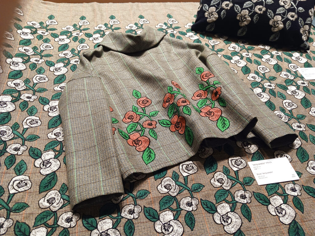 デザインやテキスタイルが製品になった姿もまた格別です。モチーフのトリミング、配置に、「ああ、こうなるのか」と完成されたスタイルも新しいデザインの在り方。リペアのコーナーも毎回力強く、製品となったミナブランドが大切にされていることを実証していますし、仕立てをされる方にとっても大きなヒントになるのではないかと感じました。