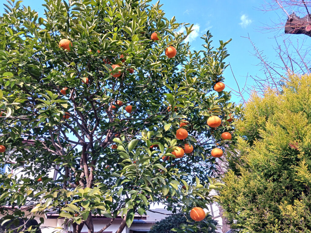 つぐ展のために初めて訪れた世田谷区用賀。美術館までは駅から小さな案内がずっと続いており、静かで落ち着いた住宅街を歩くよう導かれています。道々、大きな柑橘系の木がある住宅が多いことに気が付きました。八朔であろうか?ずっしりたわわに実をつけていました。(許可を取って撮影させていただきました。)周辺には畑もあり、そこにも同じ木がたくさんの実をつけていました。大きな家の門前ではオーガニック野菜の無人販売があり、柚子に目を奪われましたが荷物になるとやめてしまい失敗。当然ながら帰りにはもうありません。「世田谷野菜」ののぼりもあり、この周辺では営農も活発なことを知りました。